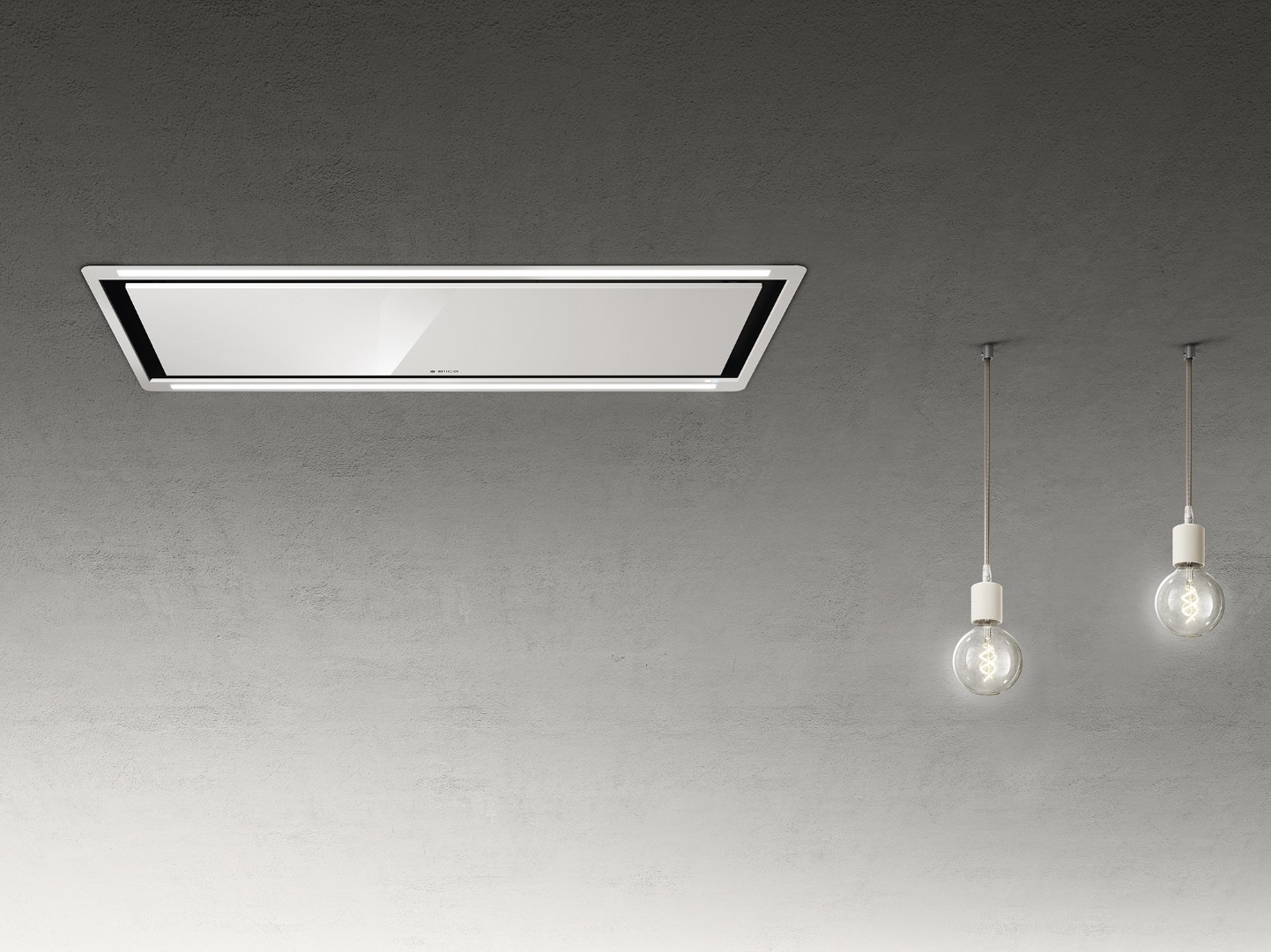 Заподлицо с потолком, красивая белая стеклянная панель хитроумно скрывает мощную и бесшумную систему вытяжки, разработанную так, чтобы гарантировать максимальную производительность даже на значительном расстоянии от варочной панели. Две 14-Ваттные светодиодные панельки с системой регулировки яркости и колориметрической температуры белого цвета обеспечивают идеальную атмосферность кухни.