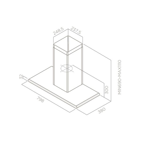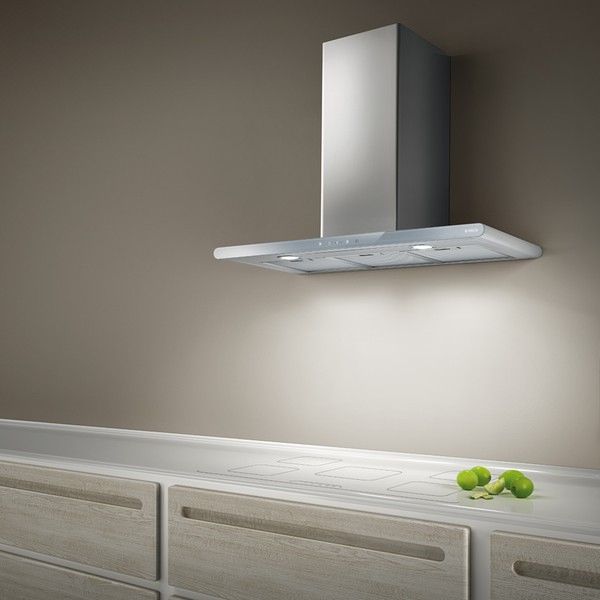 Вытяжка крепится на стену, а форма буквой «Т» создаст дополнительное место для хранения в виде полок по бокам от короба.