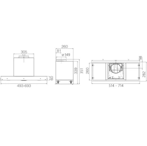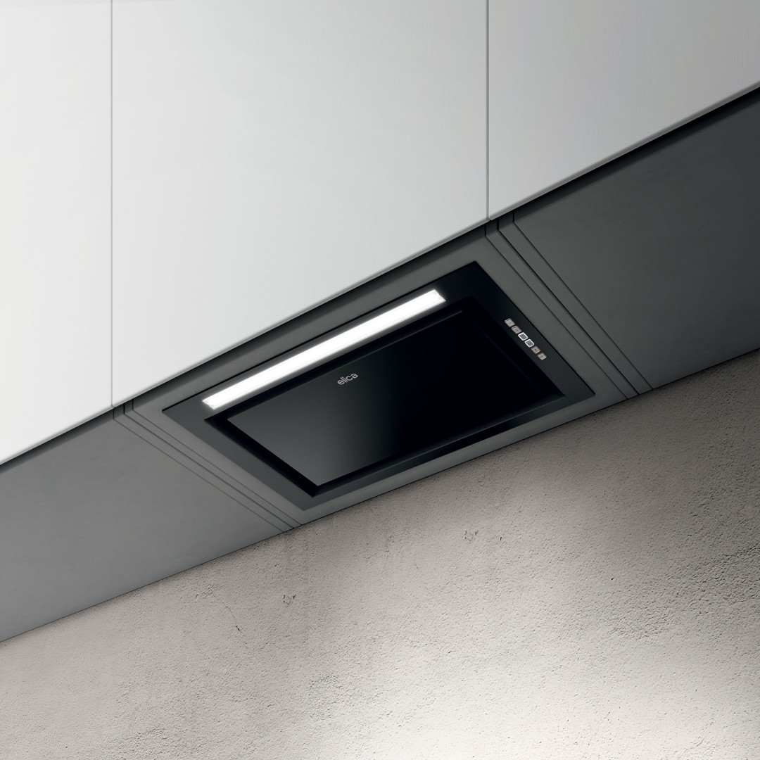 Поглощение паров и запахов происходит по всему периметру вытяжки, максимально повышая эффективность её работы. При этом элемент для отвода паров и запахов идеально скрыт панелью, что обеспечивает изделию безупречную эстетику.